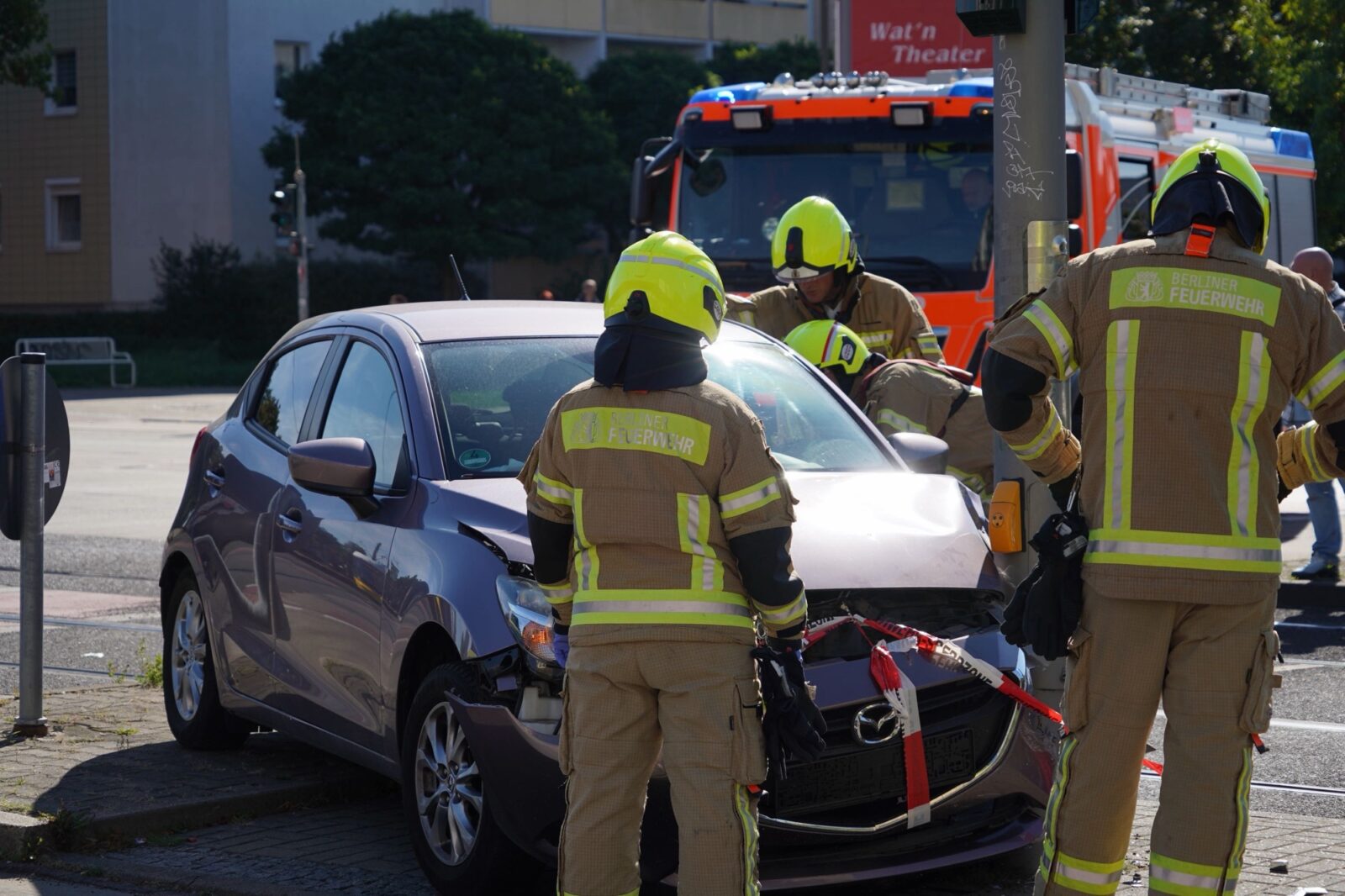 Heute Mittag ist es in Berlin-Hellersdorf an der Kreuzung Zossener Straße Ecke Alte Hellersdorfer Straße zu einem Verkehrsunfall gekommen. Ein älterer Mann verlor die Kontrolle über sein Fahrzeug und prallte gegen eine Ampelanlage.