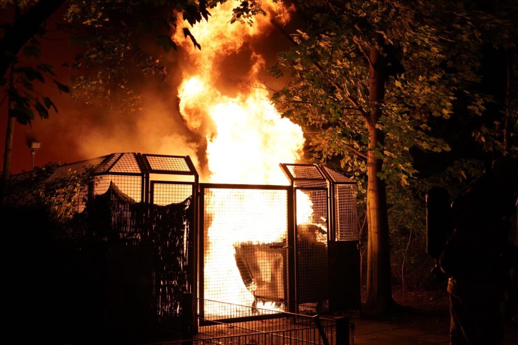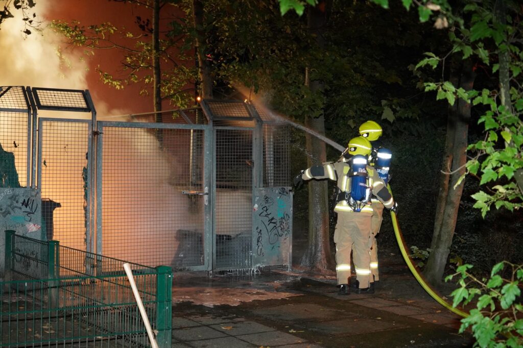 Ein Anwohner berichtete, zunächst einen lauten Knall gehört zu haben. Kurz darauf schlugen bereits Flammen aus mehreren Mülltonnen. Als die alarmierte Feuerwehr eintraf, stand der gesamte Müllsammelplatz in Vollbrand. Die Einsatzkräfte konnten das Feuer löschen und so ein Übergreifen auf benachbarte Gebäude verhindern.