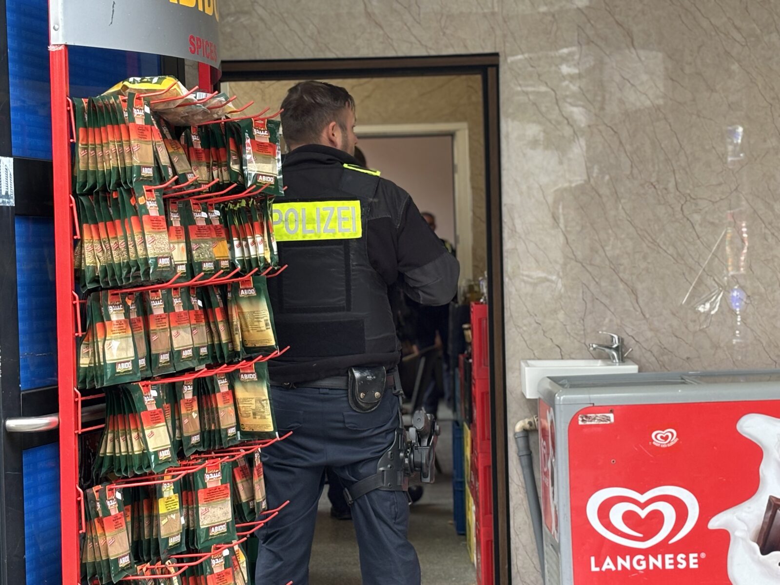 Gegen 18.00 Uhr rückten die Einsatzkräfte zur ersten Lokalität an. In einem Späti-Kiosk in der Quedlinburger Straße stießen die Einsatzkräfte auf eine Machete, die sich hinter dem Verkaufstresen befand. Da es sich dabei nicht um einen verbotenen Gegenstand im Sinne des Waffengesetzes handelte, wurde sie nach der Überprüfung dem Mitarbeiter zurückgegeben.