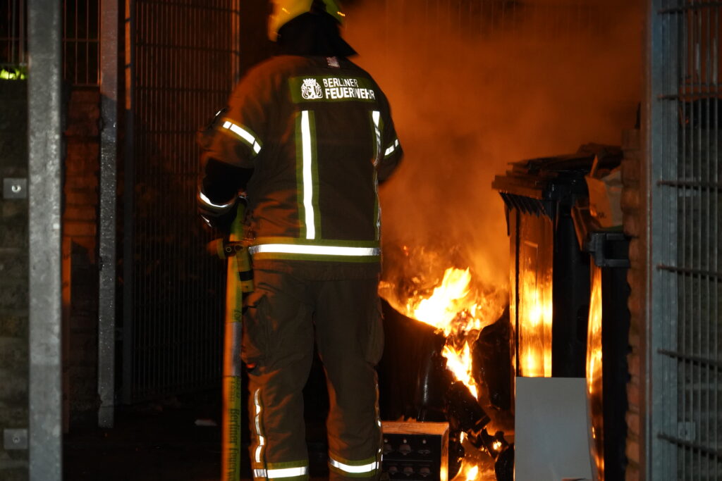 Hellersdorf – In der Nacht zu Sonntag kam es in der Stollberger Straße in Hellersdorf gleich zu zwei Bränden von Müllcontainern.